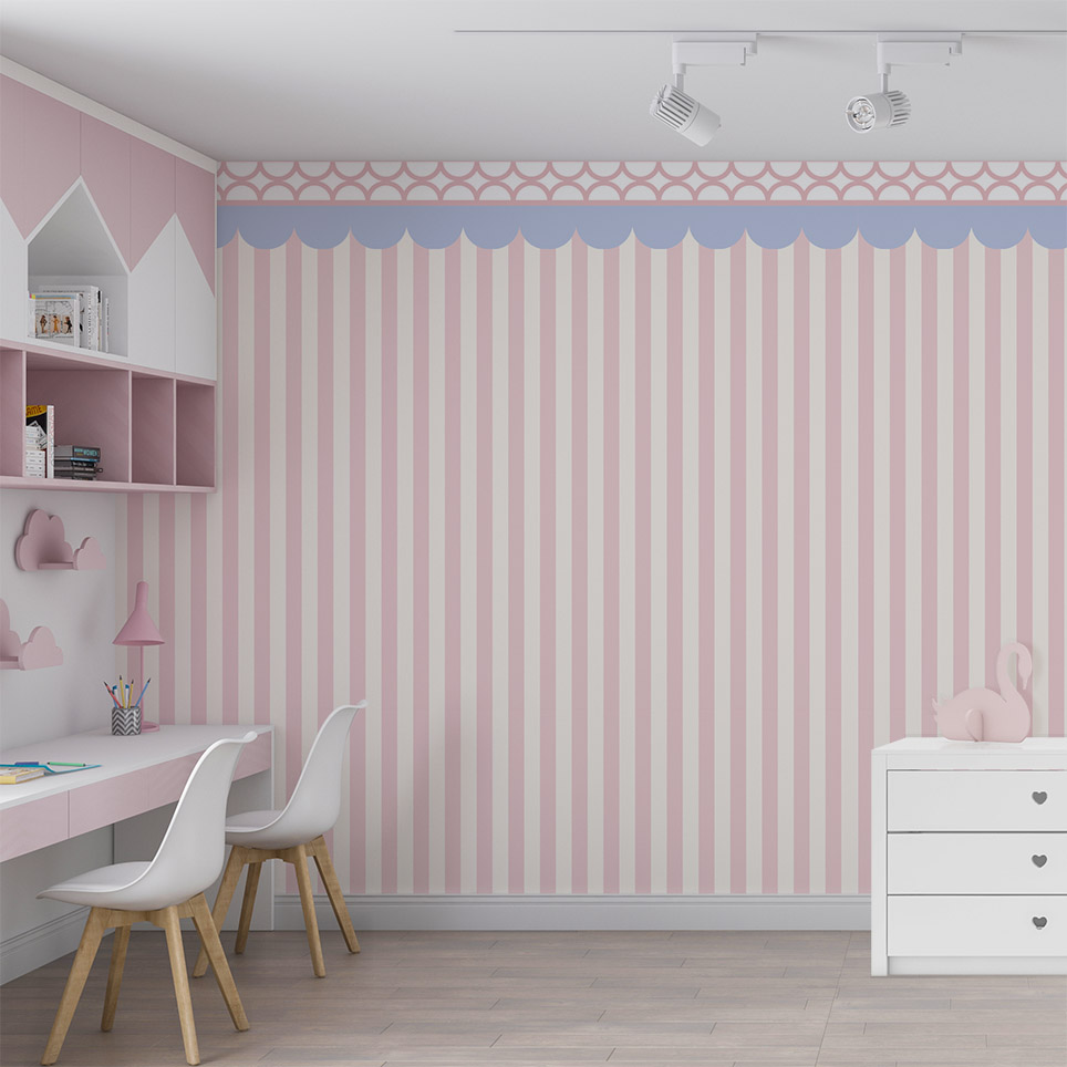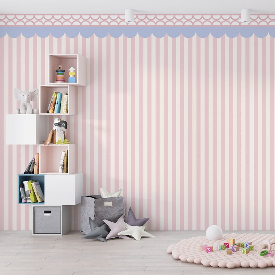 Tapeta do pokoju dziecka, która łączy to co obecnie najmodniejsze - pasy i motyw falbanki! Wzór utrzymany jest w pozytywnej, wesołej kolorystyce, która doda charakteru każdemu wnętrzu. Radosne kolory zainspirują do zabawy. To idealny wybór do pokoju dziewczynki.