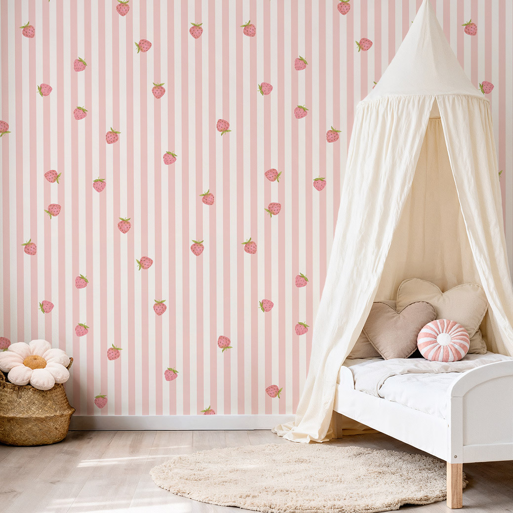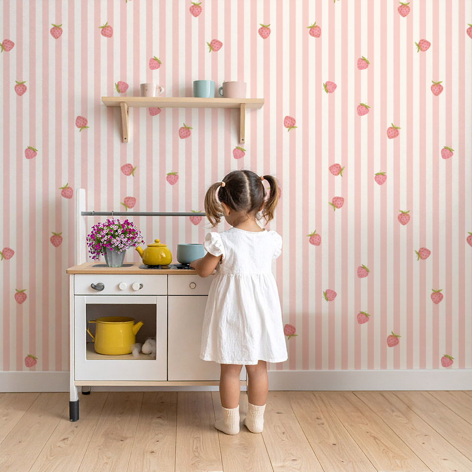 Tapeta do pokoju dziecka, która łączy to co obecnie najmodniejsze - pasy i motyw owoców! Wzór utrzymany jest w pozytywnej, wesołej kolorystyce, która doda charakteru każdemu wnętrzu. Radosne kolory zainspirują do zabawy. To idealny wybór do pokoju dziewczynki.