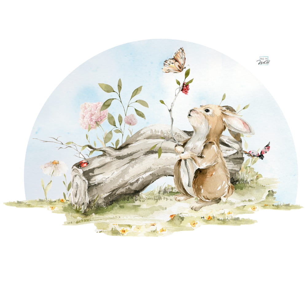 Naklejka "Leśna polana - królik przy pniu" przyozdobi przestrzeń i jednocześnie zainspiruje do zabawy i poznawania przyrody.
