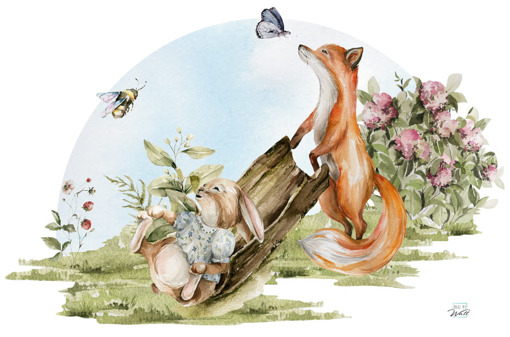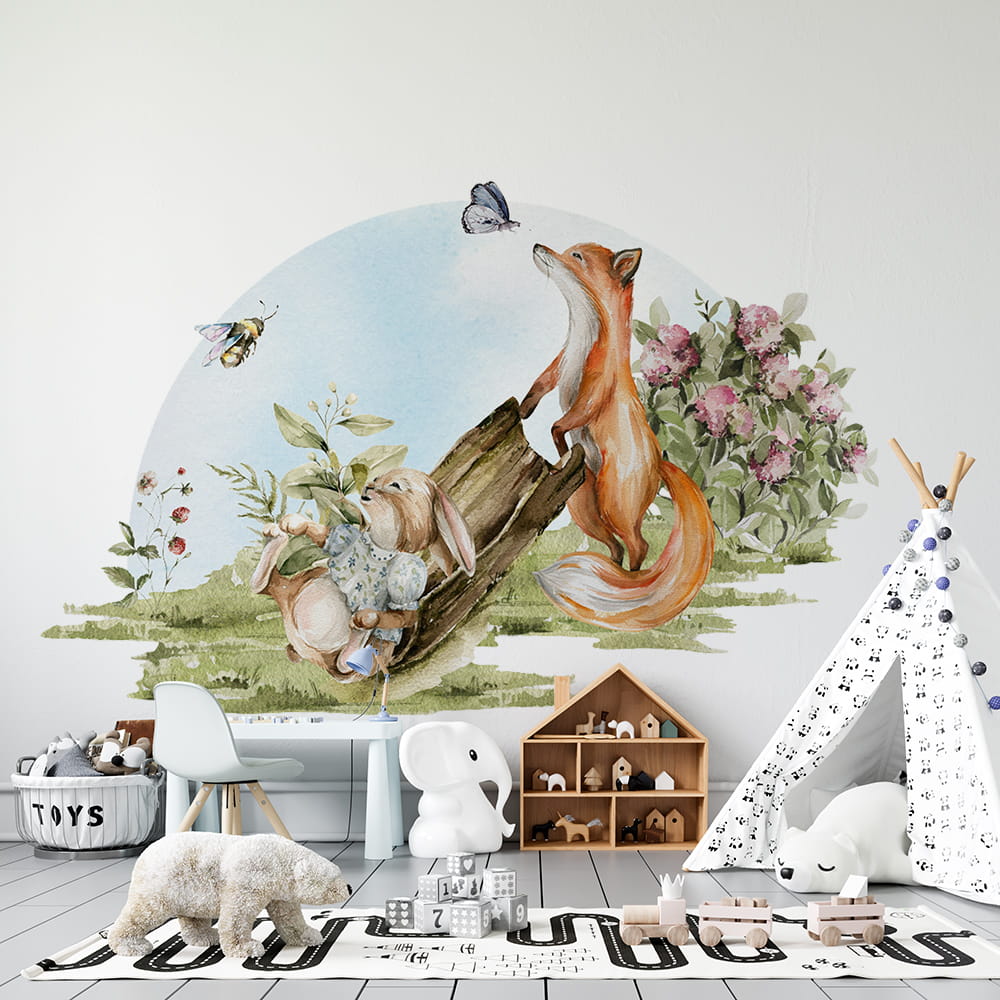 Naklejka "Leśna polana - lis i królik" przyozdobi przestrzeń i jednocześnie zainspiruje do zabawy i poznawania przyrody.
