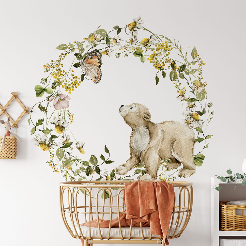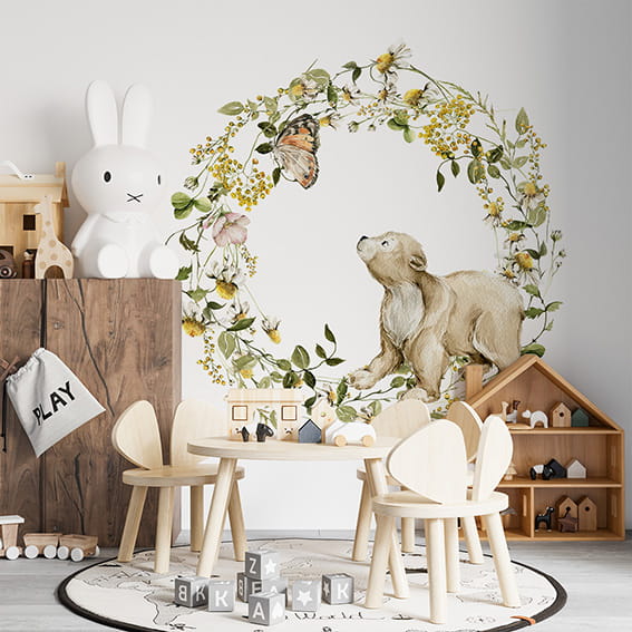 Naklejka "Leśna polana - miś w kółku" przyozdobi przestrzeń i jednocześnie zainspiruje do zabawy i poznawania przyrody.
