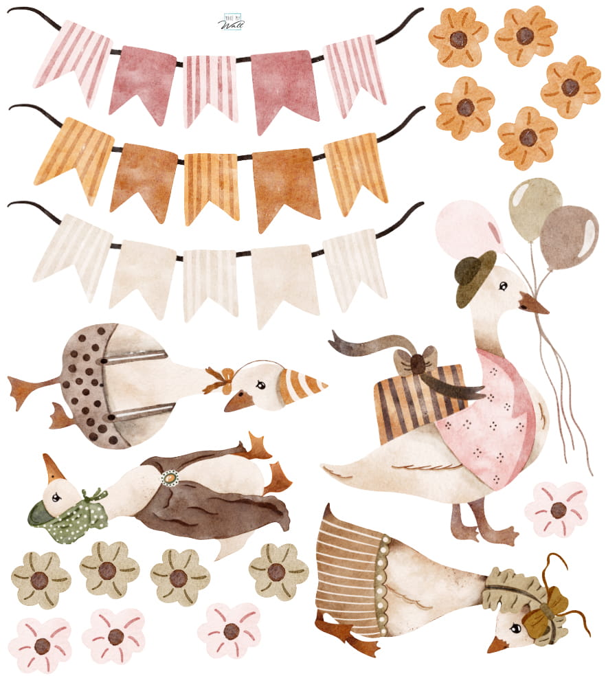Modny motyw gąsek w stonowanych kolorach. Całość zestawu ukazuje ostatnie zdjęcie.