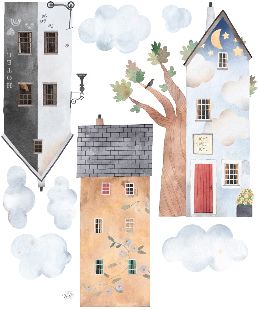 Naklejki wykonane są na białej matowej folii, która idealnie nadaje się do naklejenia na gładkie powierzchnie, jak ściana czy meble. Specjalnie dobrany klej umożliwia jednocześnie trwałe i delikatne przytwierdzenie do powierzchni. Folia jest bezwonna, wodoodporna i posiada certyfikat.