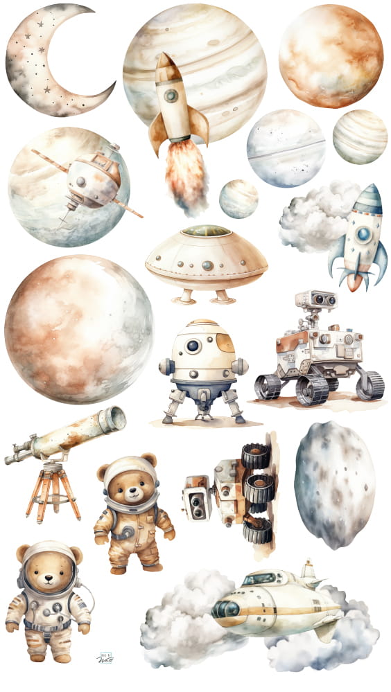 planety: 37x55cm, 39x39cm, 35x31cm, 27x27cm, 20x20cm, 14x14cm, 10x10cm