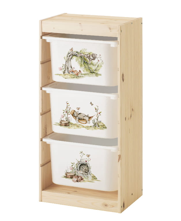 Nasze naklejki zostały stworzone, by ozdobić każdy dziecięcy mebelek, jednak szczególnie dobrze wpasują się na pojemniki IKEA do serii Trofast. Tych mebelków chyba nie trzeba przedstawiać – seria Trofast to popularne i bardzo praktyczne rozwiązanie do dziecięcego pokoiku.
