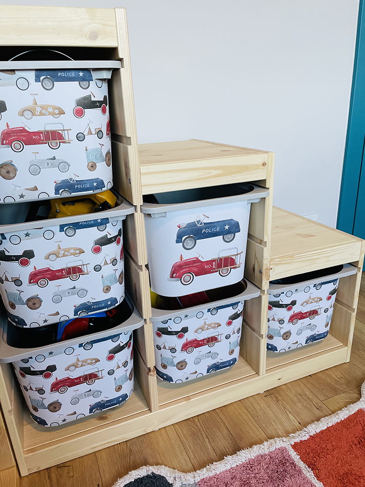 Teraz możesz udekorować pojemniki tak, aby mebel idealnie pasował do klimatu pokoiku i zdobił wnętrze, a jednocześnie ułatwiał dziecku sprzątanie po zabawie.