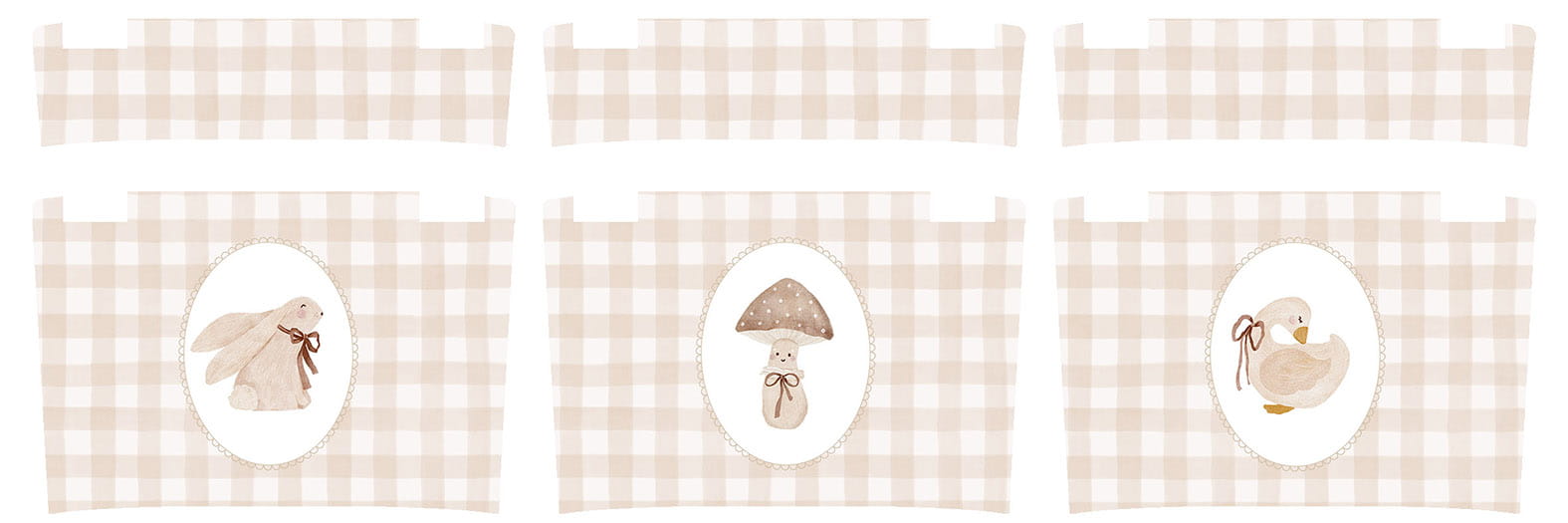 Uroczy wzór zwierzątek na modnej beżowej kratce sprawi, że Twój regalik będzie wyglądał oryginalnie i stylowo.