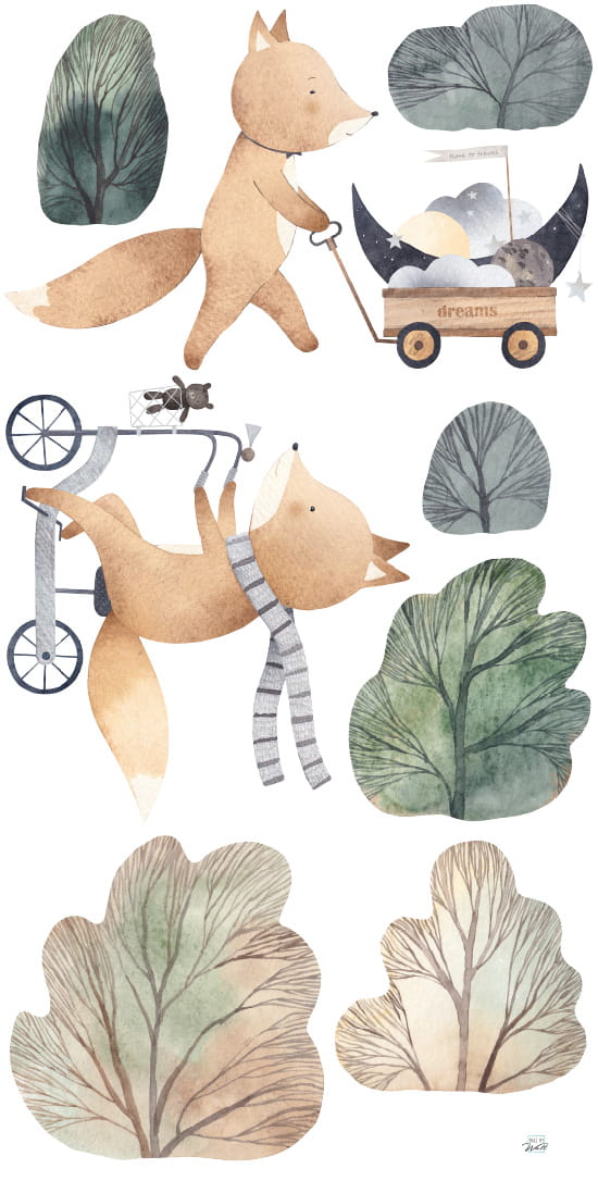 Naklejki wykonane są na białej matowej folii, która idealnie nadaje się do naklejenia na gładkie powierzchnie, jak ściana czy meble. Specjalnie dobrany klej umożliwia jednocześnie trwałe i delikatne przytwierdzenie do powierzchni. Folia jest bezwonna, wodoodporna i posiada certyfikat.