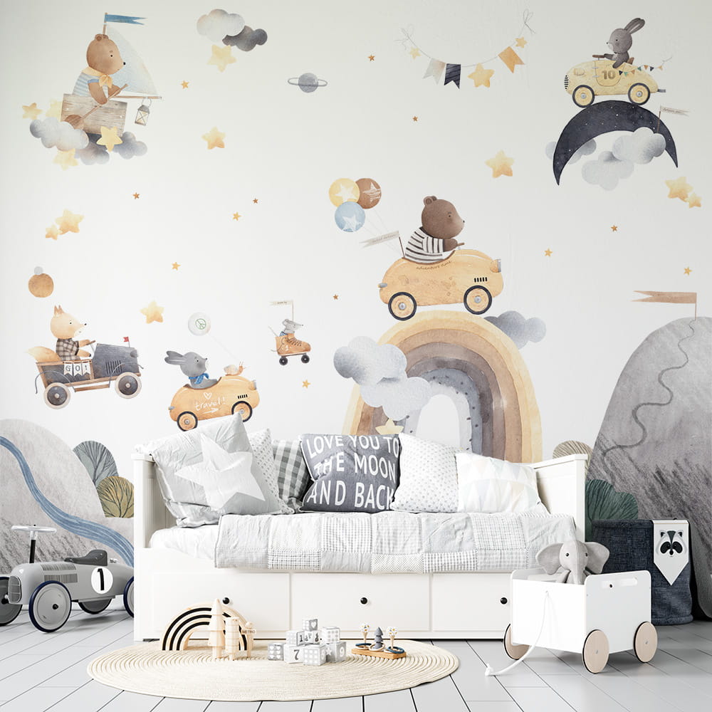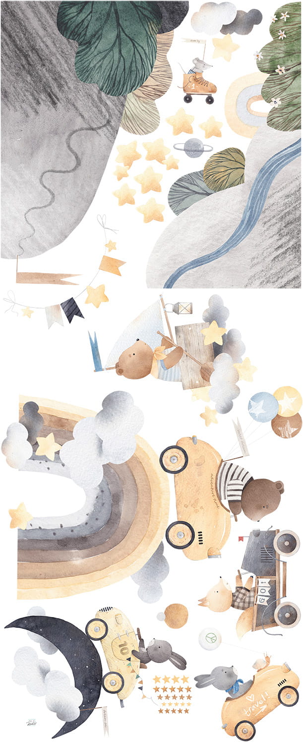 Naklejki wykonane są na białej matowej folii, która idealnie nadaje się do naklejenia na gładkie powierzchnie, jak ściana czy meble. Specjalnie dobrany klej umożliwia jednocześnie trwałe i delikatne przytwierdzenie do powierzchni. Folia jest bezwonna, wodoodporna i posiada certyfikat.