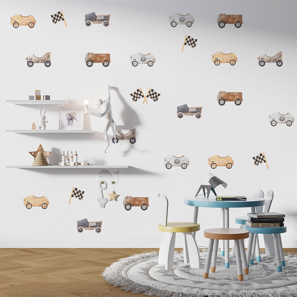 Naklejki wykonane są na białej matowej folii, która idealnie nadaje się do naklejenia na gładkie powierzchnie, jak ściana czy meble. Specjalnie dobrany klej umożliwia jednocześnie trwałe i delikatne przytwierdzenie do powierzchni. Folia jest bezwonna, wodoodporna i posiada certyfikat.