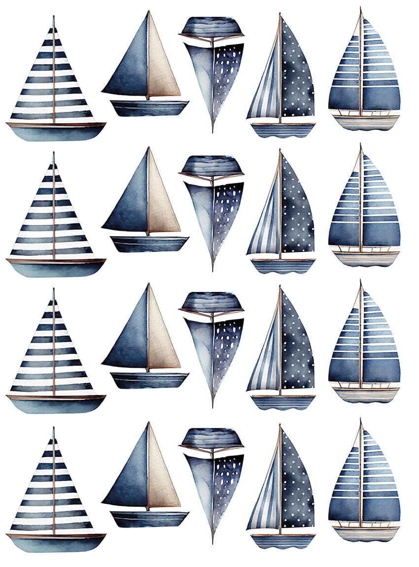 mniejsze żaglówki: ok. 10x20cm