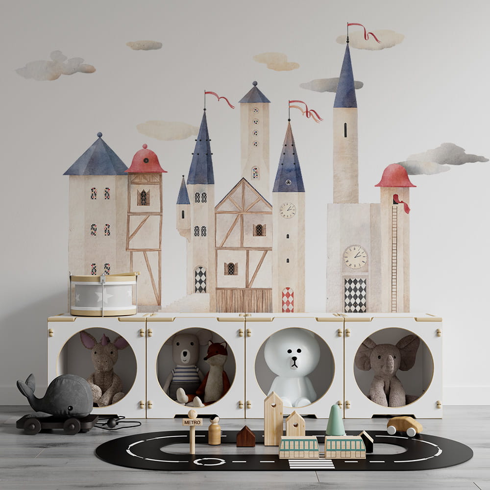 wieże z czerwonym dachem: 18x66cm, 19x75cm