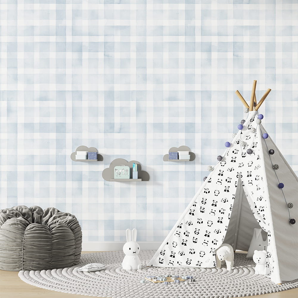 Tapeta "Little Dogs Race – niebieska szachownica"