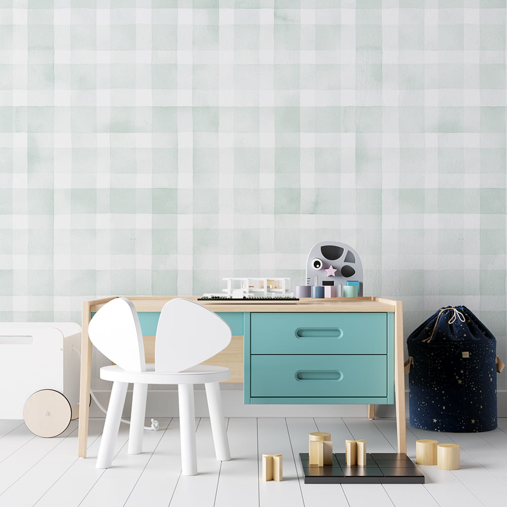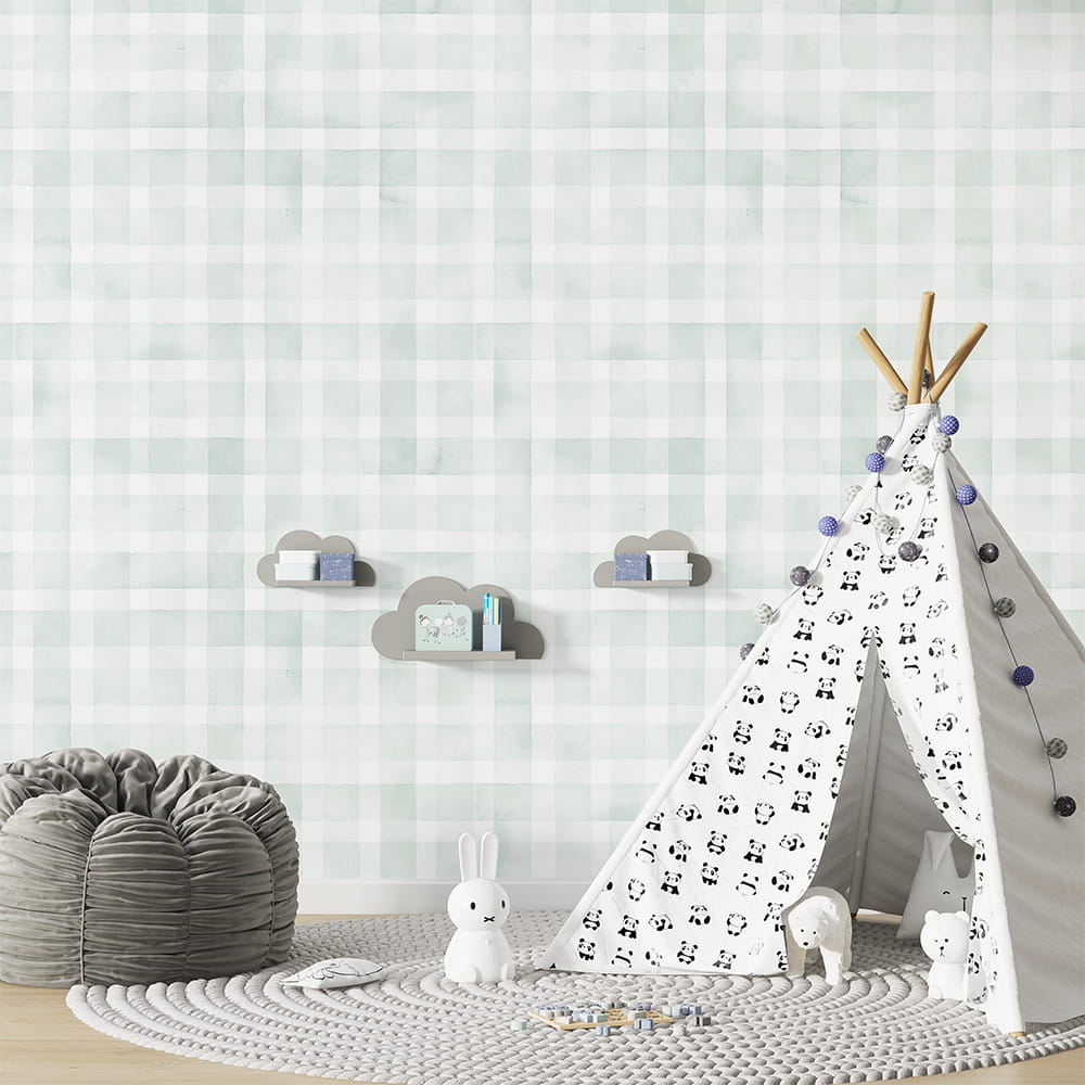 Tapeta "Kwiecista Dolina – lamperia – gąski i kratka – zieleń"