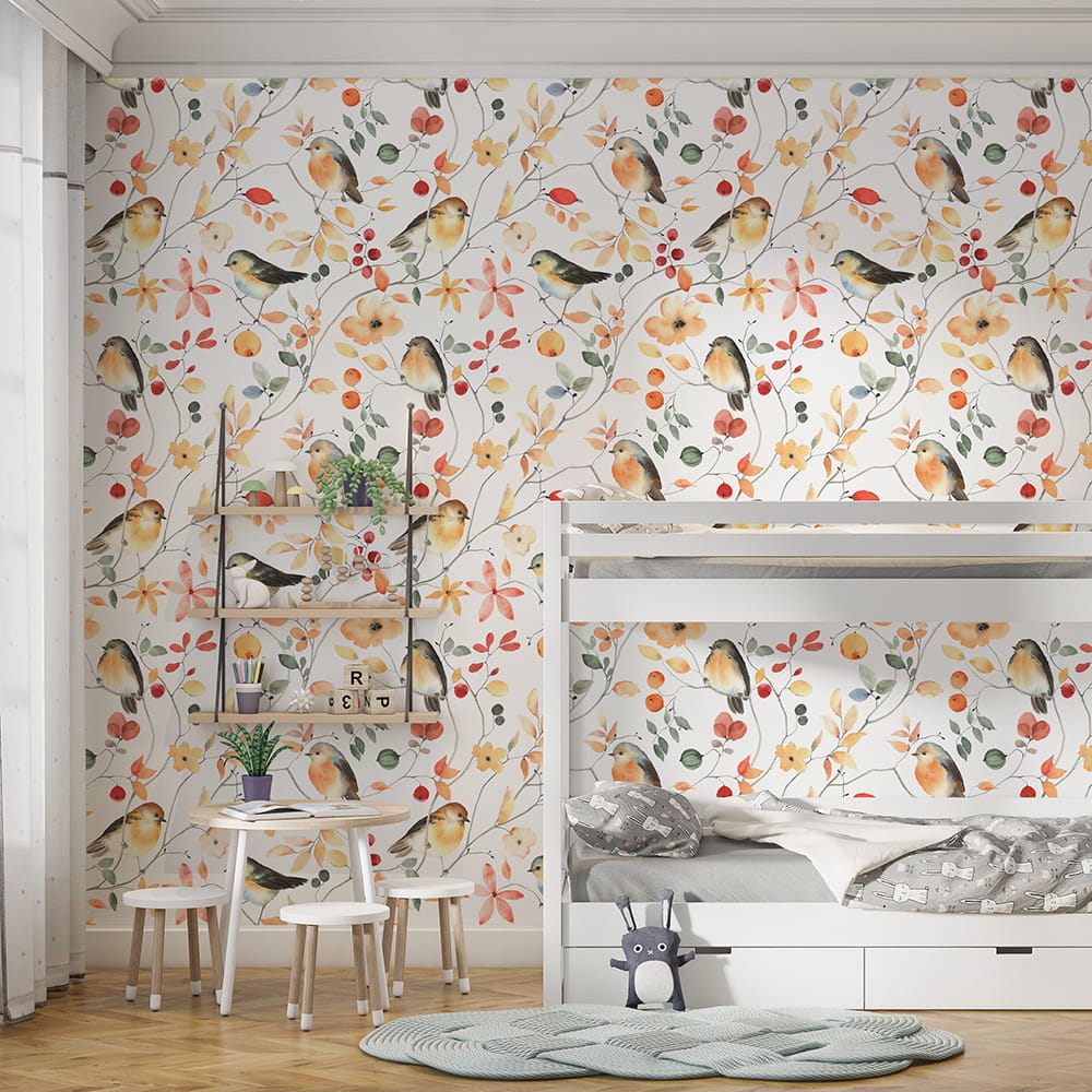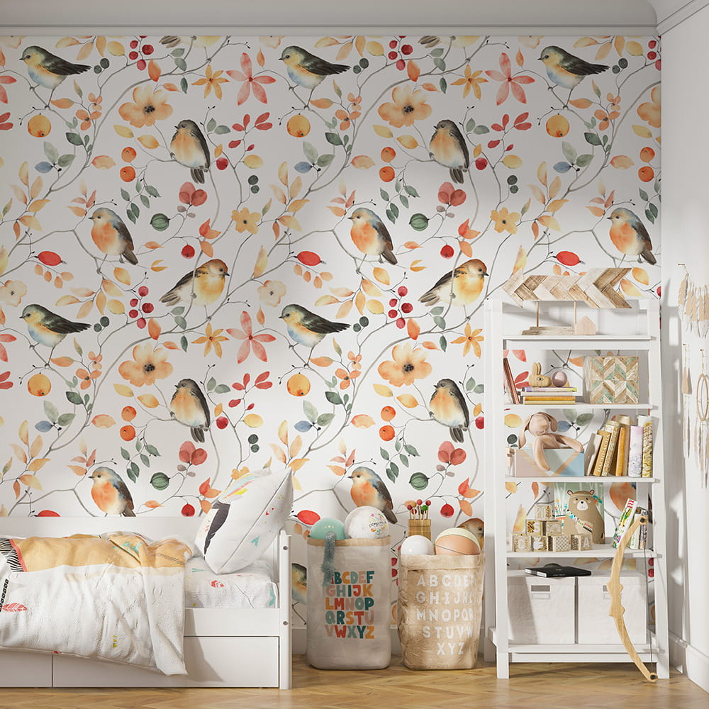 Tapeta "PTASZKI NA GAŁĄZKACH"